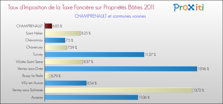 A noter : la valeur moyenne de ce taux de taxe foncière sur le bâti dans les communes françaises similaires à Champrenault était de 10.11 %, en 2011.