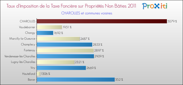 En 2011, le taux de la taxe foncière sur le non bâti vôté par le conseil municipal de Charolles était de : 50.79 %.