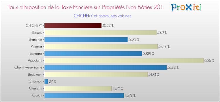 En 2011, le taux de la taxe foncière sur le non bâti vôté par le conseil municipal de Chichery était de : 40.22 %.