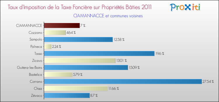 A noter : la valeur moyenne de ce taux de taxe foncière sur le bâti dans les communes françaises similaires à Ciamannacce était de 12.55 %, en 2011.