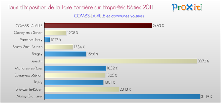 A noter : la valeur moyenne de ce taux de taxe foncière sur le bâti dans les communes françaises similaires à Combs-la-Ville était de 23.61 %, en 2011.