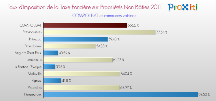 En 2011, le taux de la taxe foncière sur le non bâti vôté par le conseil municipal de Compolibat était de : 66.66 %.