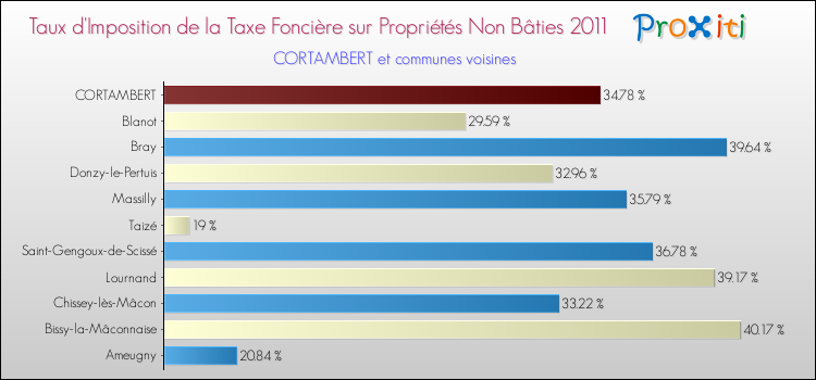 Vous trouverez ci-dessous des graphiques qui vous permettent de situer le taux de la taxe foncière sur le non bâti de Cortambert par rapport aux communes voisines.