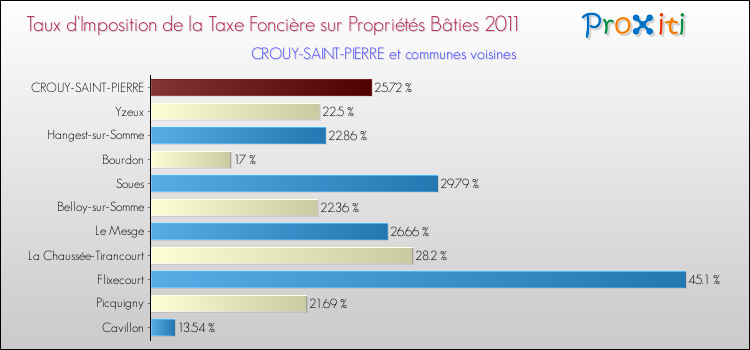 A noter : la valeur moyenne de ce taux de taxe foncière sur le bâti dans les communes françaises similaires à Crouy-Saint-Pierre était de 14.58 %, en 2011.