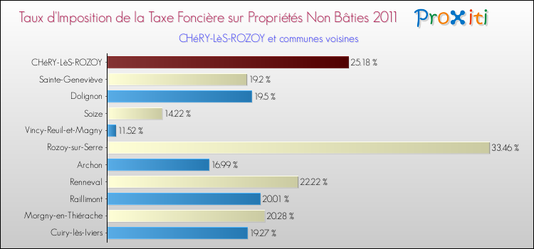 En 2011, le taux de la taxe foncière sur le non bâti vôté par le conseil municipal de Chéry-lès-Rozoy était de : 25.18 %.