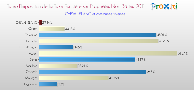 A noter : la valeur moyenne de ce taux de taxe foncière sur le non bâti dans les communes françaises similaires à Cheval-Blanc était de 51.69 %, en 2011.