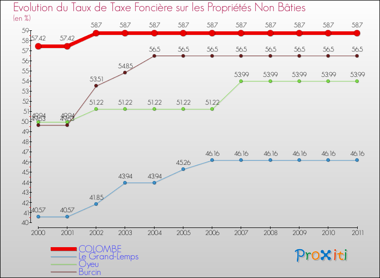 A Colombe, le taux de taxe foncière sur le non bâti a donc augmenté de 2.23 % entre 2000 et 2011.