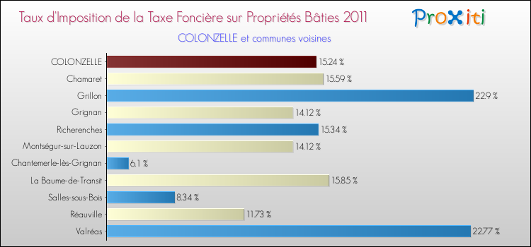 A noter : la valeur moyenne de ce taux de taxe foncière sur le bâti dans les communes françaises similaires à Colonzelle était de 13.42 %, en 2011.