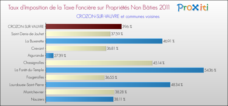 A Crozon-sur-Vauvre, le taux de taxe foncière sur le non bâti a donc baissé de 5.53 % entre 2000 et 2011.
