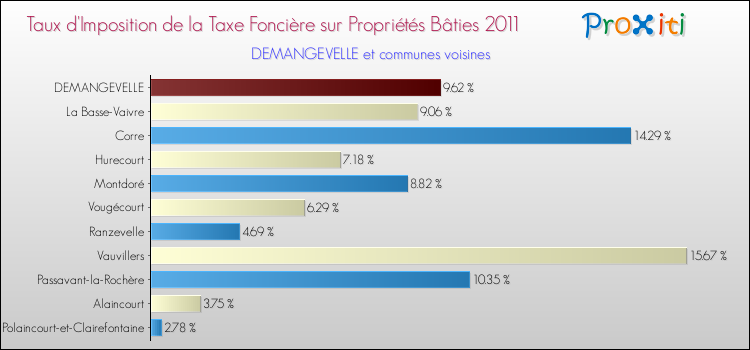 A noter : la valeur moyenne de ce taux de taxe foncière sur le bâti dans les communes françaises similaires à Demangevelle était de 11.86 %, en 2011.