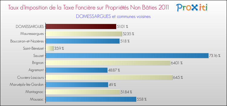 A Domessargues, le taux de la taxe foncière sur le non bâti est donc plus élevé de 10.82 % que pour des communes similaires.