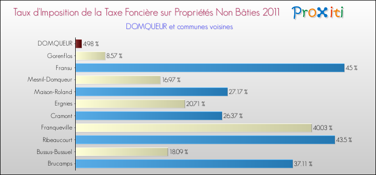 Vous trouverez ci-dessous des graphiques qui vous permettent de situer le taux de la taxe foncière sur le non bâti de Domqueur par rapport aux communes voisines.