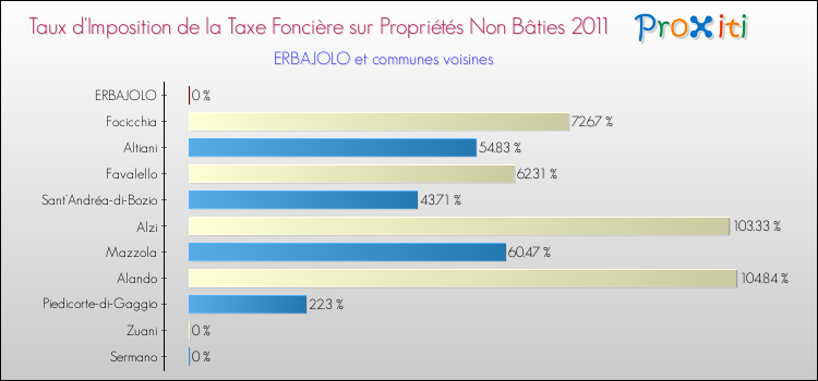 Vous trouverez ci-dessous des graphiques qui vous permettent de situer le taux de la taxe foncière sur le non bâti de Erbajolo par rapport aux communes voisines.