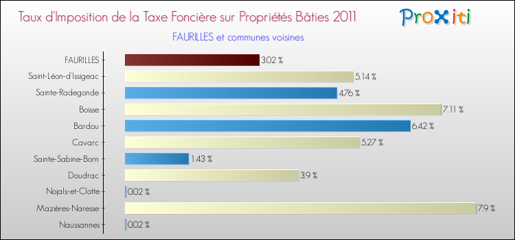 A noter : la valeur moyenne de ce taux de taxe foncière sur le bâti dans les communes françaises similaires à Faurilles était de 10.11 %, en 2011.