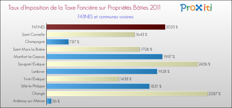 En 2011, le taux de la taxe foncière sur le bâti vôté par le conseil municipal de Fatines était de : 20.33 %.