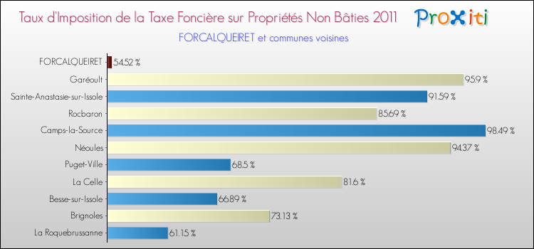 A Forcalqueiret, le taux de la taxe foncière sur le non bâti est donc plus élevé de 26.91 % que pour des communes similaires.