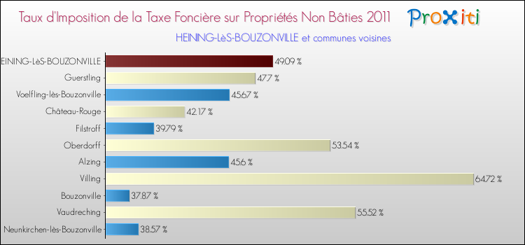 A noter : la valeur moyenne de ce taux de taxe foncière sur le non bâti dans les communes françaises similaires à Heining-lès-Bouzonville était de 40.67 %, en 2011.