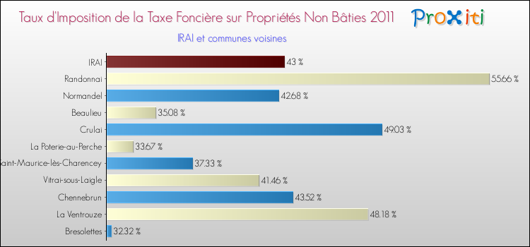 Pendant la même période, les communes françaises similaires à Irai, ont vu leur taux de taxe foncière sur le non bâti augmenter de 47.48 % en moyenne entre 2000 et 2011.