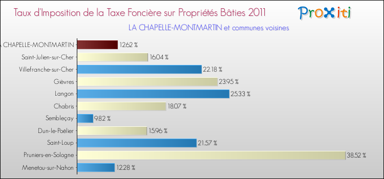A noter : la valeur moyenne de ce taux de taxe foncière sur le bâti dans les communes françaises similaires à La Chapelle-Montmartin était de 11.86 %, en 2011.