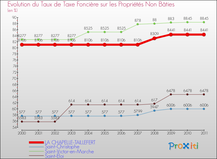 A La Chapelle-Taillefert, le taux de taxe foncière sur le non bâti a donc augmenté de 4.13 % entre 2000 et 2011.