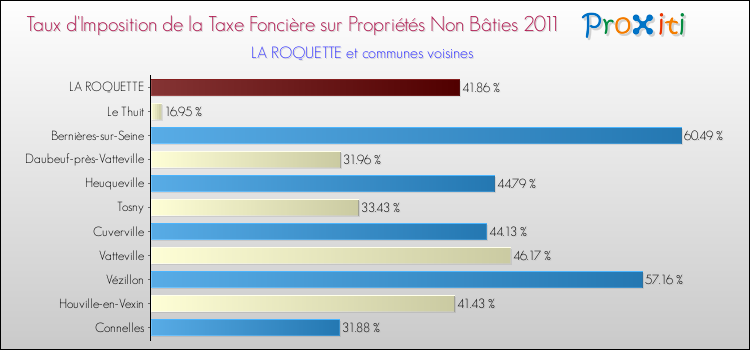 En 2011, le taux de la taxe foncière sur le non bâti vôté par le conseil municipal de La Roquette était de : 41.86 %.