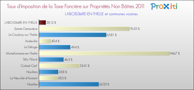 Comparaison des taux d'imposition de la taxe foncière sur les immeubles et terrains non batis  2011 pour LABOISSIèRE-EN-THELLE et les communes voisines