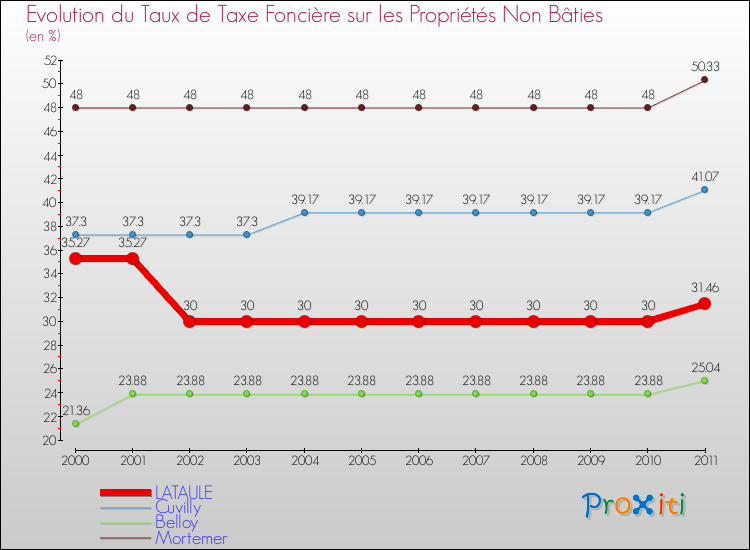 A noter : la valeur moyenne de ce taux de taxe foncière sur le non bâti dans les communes françaises similaires à Lataule était de 25.53 %, en 2011.