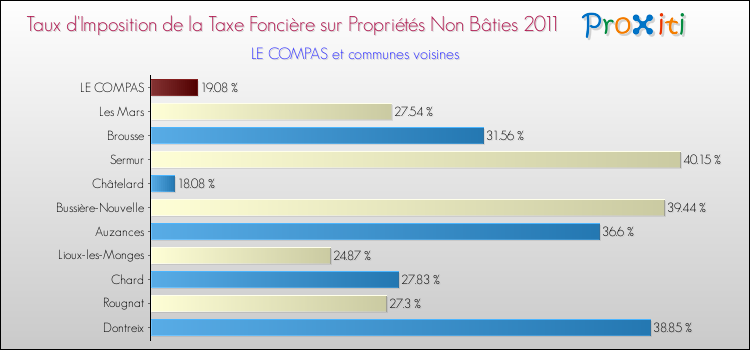 Pendant la même période, les communes françaises similaires à Le Compas, ont vu leur taux de taxe foncière sur le non bâti augmenter de 49.83 % en moyenne entre 2000 et 2011.