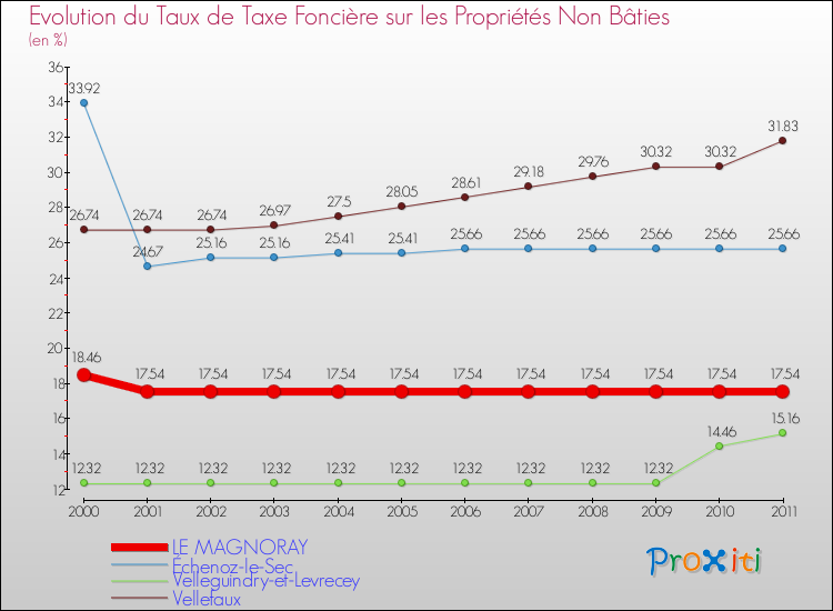 En 2011, le taux de la taxe foncière sur le non bâti vôté par le conseil municipal de Le Magnoray était de : 17.54 %.