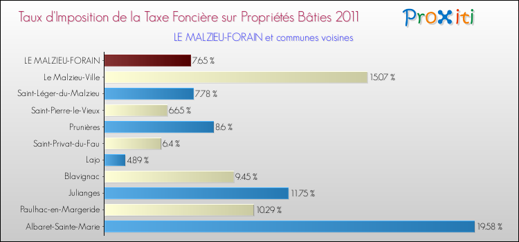 A noter : la valeur moyenne de ce taux de taxe foncière sur le bâti dans les communes françaises similaires à Le Malzieu-Forain était de 14.58 %, en 2011.