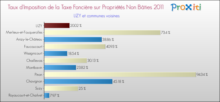 En 2011, le taux de la taxe foncière sur le non bâti vôté par le conseil municipal de Lizy était de : 20.02 %.