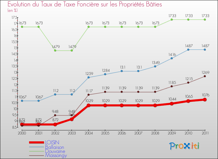 A Loisin, le taux de taxe foncière sur le bâti a donc augmenté de 23.39 % entre 2000 et 2011.