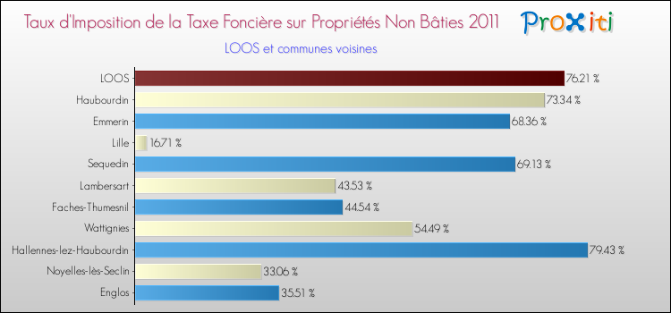 A Loos, le taux de la taxe foncière sur le non bâti est donc plus élevé de 28.99 % que pour des communes similaires.