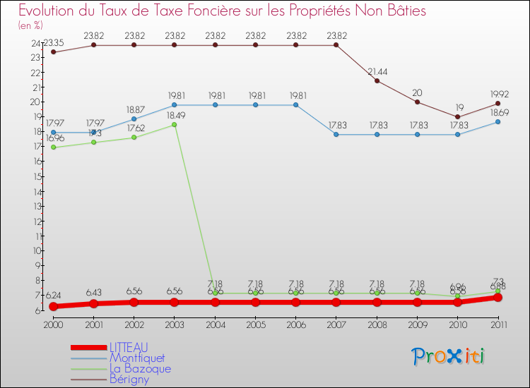 A Litteau, le taux de taxe foncière sur le non bâti a donc augmenté de 10.26 % entre 2000 et 2011.