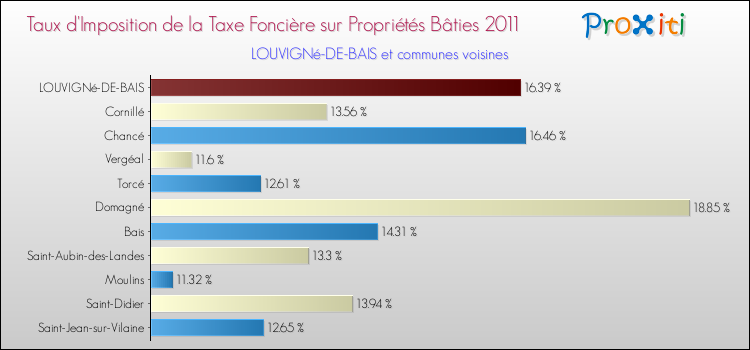 A noter : la valeur moyenne de ce taux de taxe foncière sur le bâti dans les communes françaises similaires à Louvigné-de-Bais était de 15.82 %, en 2011.