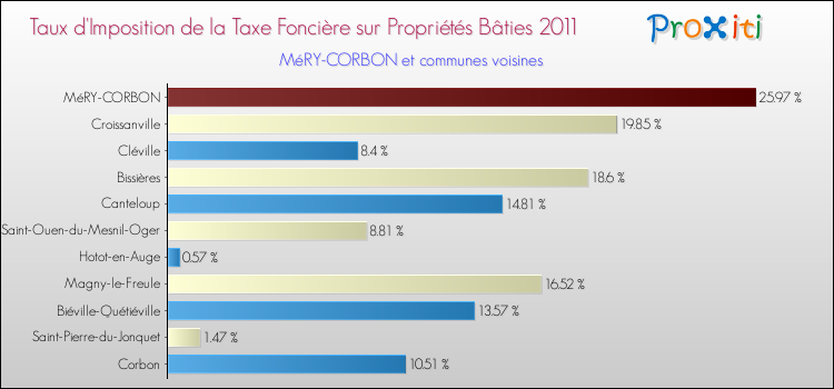 A noter : la valeur moyenne de ce taux de taxe foncière sur le bâti dans les communes françaises similaires à Méry-Corbon était de 15.82 %, en 2011.