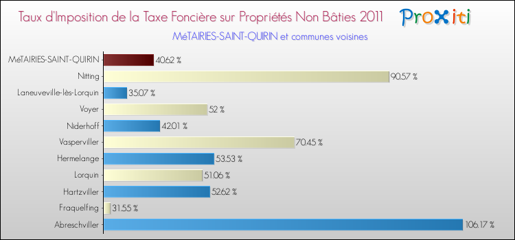 A Métairies-Saint-Quirin, le taux de la taxe foncière sur le non bâti est donc plus élevé de 35.85 % que pour des communes similaires.