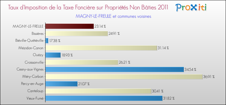 En 2011, le taux de la taxe foncière sur le non bâti vôté par le conseil municipal de Magny-le-Freule était de : 23.14 %.