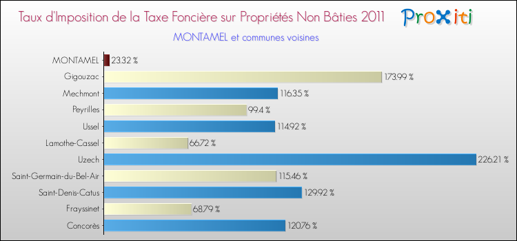 A noter : la valeur moyenne de ce taux de taxe foncière sur le non bâti dans les communes françaises similaires à Montamel était de 25.53 %, en 2011.