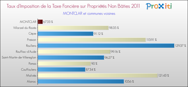 Pendant la même période, les communes françaises similaires à Montclar, ont vu leur taux de taxe foncière sur le non bâti augmenter de 26.73 % en moyenne entre 2000 et 2011.