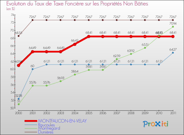 A Montfaucon-en-Velay, le taux de taxe foncière sur le non bâti a donc augmenté de 12.26 % entre 2000 et 2011.
