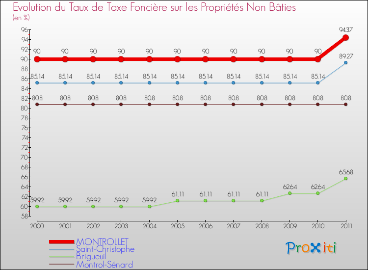 A Montrollet, le taux de taxe foncière sur le non bâti a donc augmenté de 4.86 % entre 2000 et 2011.