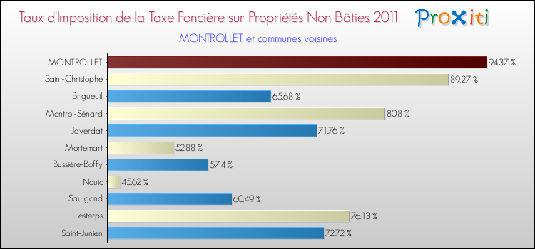 A noter : la valeur moyenne de ce taux de taxe foncière sur le non bâti dans les communes françaises similaires à Montrollet était de 29.9 %, en 2011.