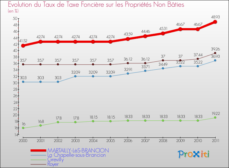A Martailly-lès-Brancion, le taux de taxe foncière sur le non bâti a donc augmenté de 17.85 % entre 2000 et 2011.