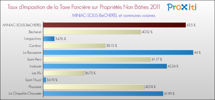 En 2011, le taux de la taxe foncière sur le non bâti vôté par le conseil municipal de Miniac-sous-Bécherel était de : 43.5 %.