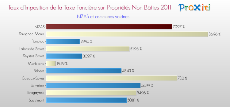 A noter : la valeur moyenne de ce taux de taxe foncière sur le non bâti dans les communes françaises similaires à Nizas était de 25.53 %, en 2011.