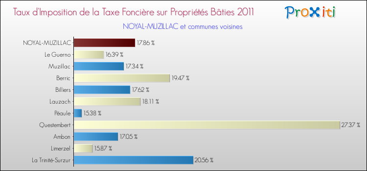 A noter : la valeur moyenne de ce taux de taxe foncière sur le bâti dans les communes françaises similaires à Noyal-Muzillac était de 17.74 %, en 2011.