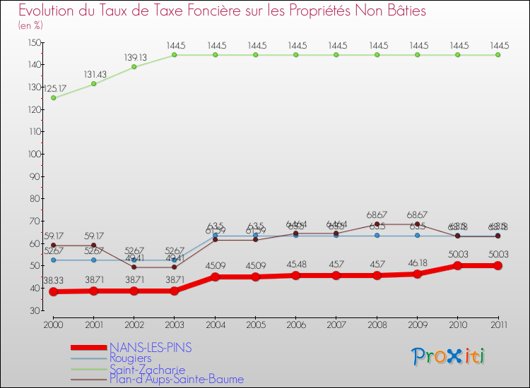 A Nans-les-Pins, le taux de taxe foncière sur le non bâti a donc augmenté de 30.52 % entre 2000 et 2011.