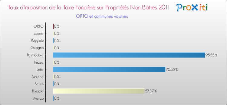 A noter : la valeur moyenne de ce taux de taxe foncière sur le non bâti dans les communes françaises similaires à Orto était de 25.53 %, en 2011.