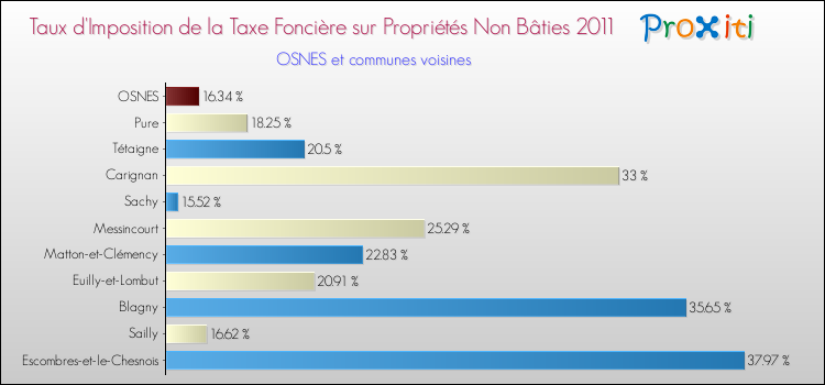 A noter : la valeur moyenne de ce taux de taxe foncière sur le non bâti dans les communes françaises similaires à Osnes était de 25.53 %, en 2011.